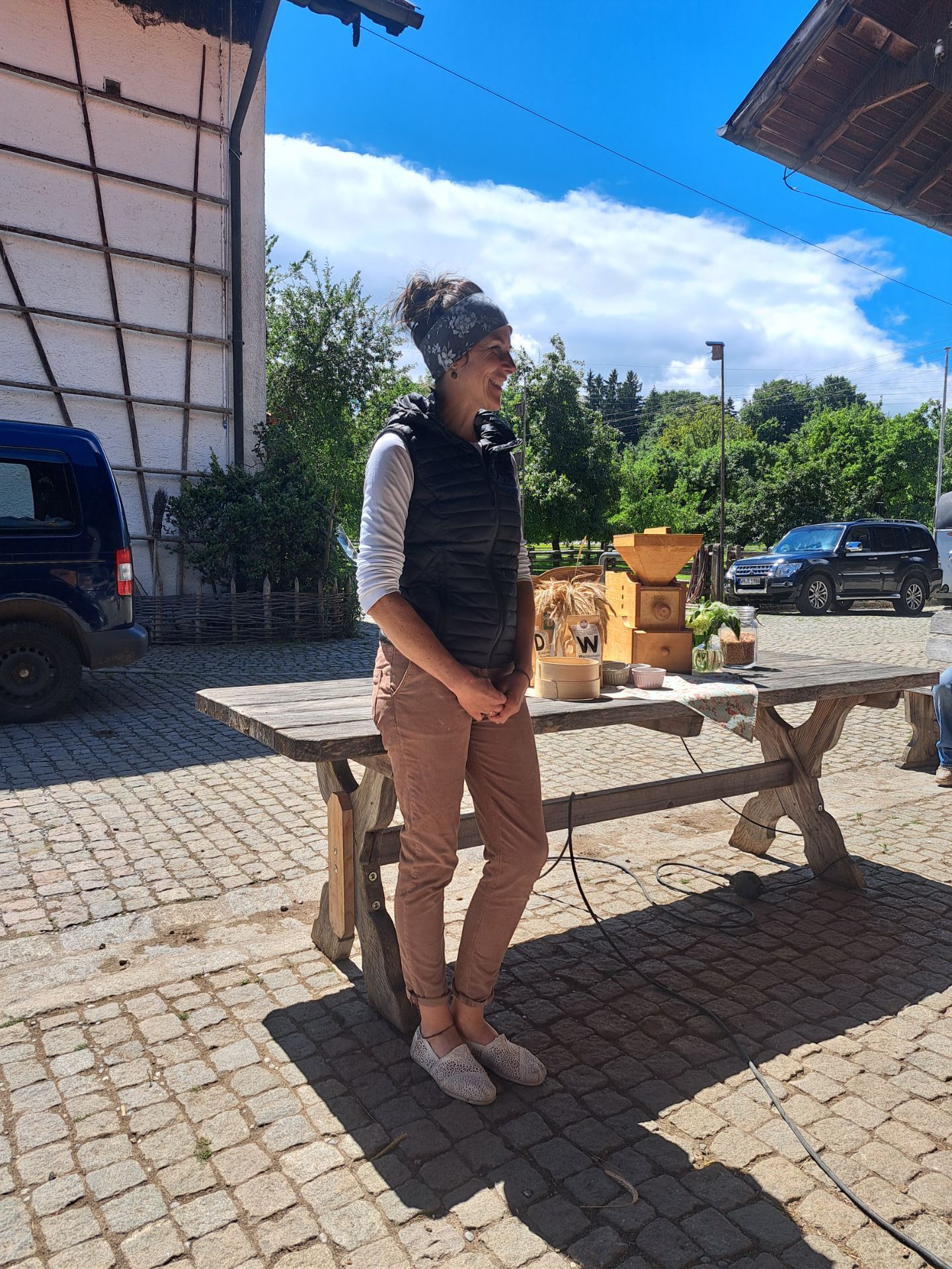 Im zweiten Teil übernahm Antonia und zeigte den Kindern unter anderem ihre Getreidemühle. Hier durften sie selbst miterleben, wie aus Dinkel frisches Mehl gemahlen wird. Beim Vergleich mit gekauftem Mehl wurde der Unterschied schnell klar – sowohl im Geruch als auch im Geschmack. Antonia hat für uns alle Vollkornsemmeln gebacken, die wir testen durften. "Das sind die besten Semmeln, die ich je gegessen habe.", lautete das Urteil eines Schülers. Zum Abschluss wurde aus Sahne noch Butter selbst geschüttelt und anschließend verkostet.
