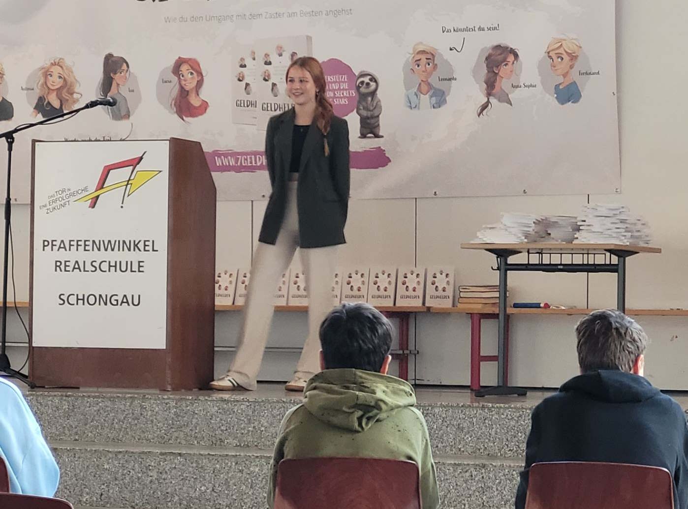 Und zum anderen der von ihr an unserer Schule eingeführte Projekttag zur finanziellen Bildung von Jugendlichen. Sie erwähnte kurz das von ihr mit verfasste Buch: „Geldhelden“ und erzählte dann von dem Projekttag, den sie auf Wunsch auch allen anderen Schulen anbot. Lucia hält auch Webinare zu diesem Thema ab, das nächste wird am kommenden Donnerstag, 21.11.24 stattfinden.