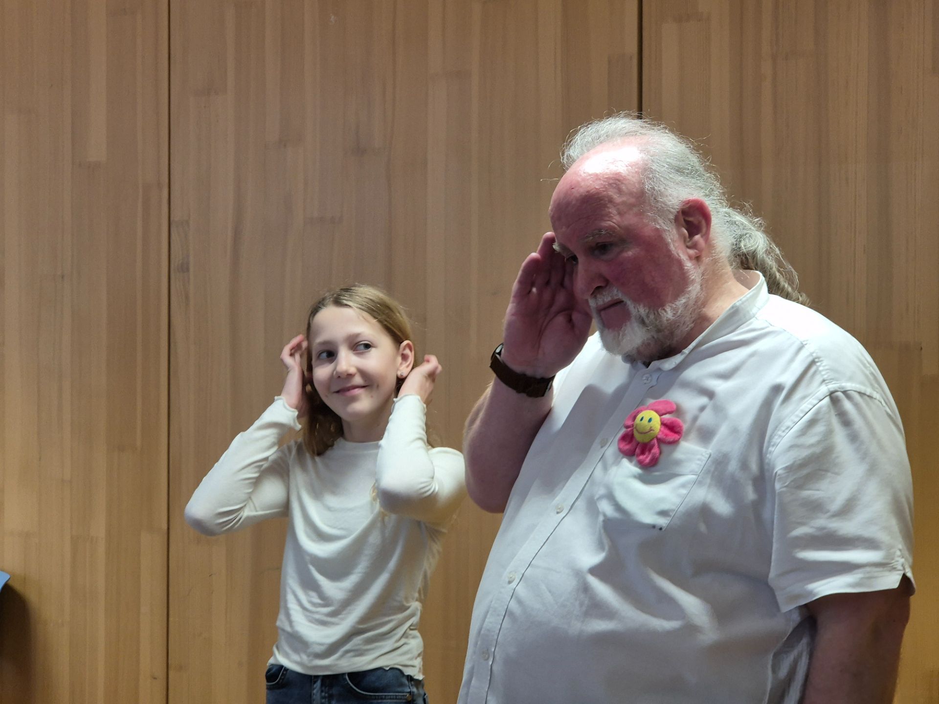 SAME PROCEDURE AS EVERY YEAR – so könnte die Tradition bezeichnet werden, die sich unsere Schule in den letzten Jahren aufgebaut hat und die die Schüler/-innen jedes Jahr aufs Neue begeistert und ihre Englischkenntnisse auf lebendige Weise fördert: Der Besuch des Geschichtenerzählers Jim Wingate aus Wales. Einmal im Jahr kommt der gebürtige Schotte an die Schule, um unseren Schüler/-innen englische Geschichten zu erzählen und sie aktiv in die Stücke mit einzubeziehen. Dieser Besuch ist nicht nur eine willkommene Abwechslung zum regulären Unterricht, sondern bietet den Schüler/-innen die einzigartige Möglichkeit, Englisch auf eine spielerische Weise zu erleben. Besonders wertvoll ist die Möglichkeit, die Geschichten aus der Perspektive eines Muttersprachlers zu hören. Der Besuch des Geschichtenerzählers Jim hat sich fest in den Jahreskalender der Schule integriert und wird sowohl von den Schüler/-innen als auch von den Lehrkräften mit großer Vorfreude erwartet. Eine Neuerung in diesem Jahr war, dass zum ersten Mal auch eine 9. und eine 10. Klasse an den Geschichten teilnehmen durften. Bisher galt dieses ‚,Theater‘‘ nur den 5. und 6. Klassen, da die Themen für dieses Alter ansprechender und die Sprache dem Lernniveau angepasster ist. Auch wenn die Motivation hier vielleicht eine andere war, hatten dennoch auch die Großen ihren Spaß daran. 😊