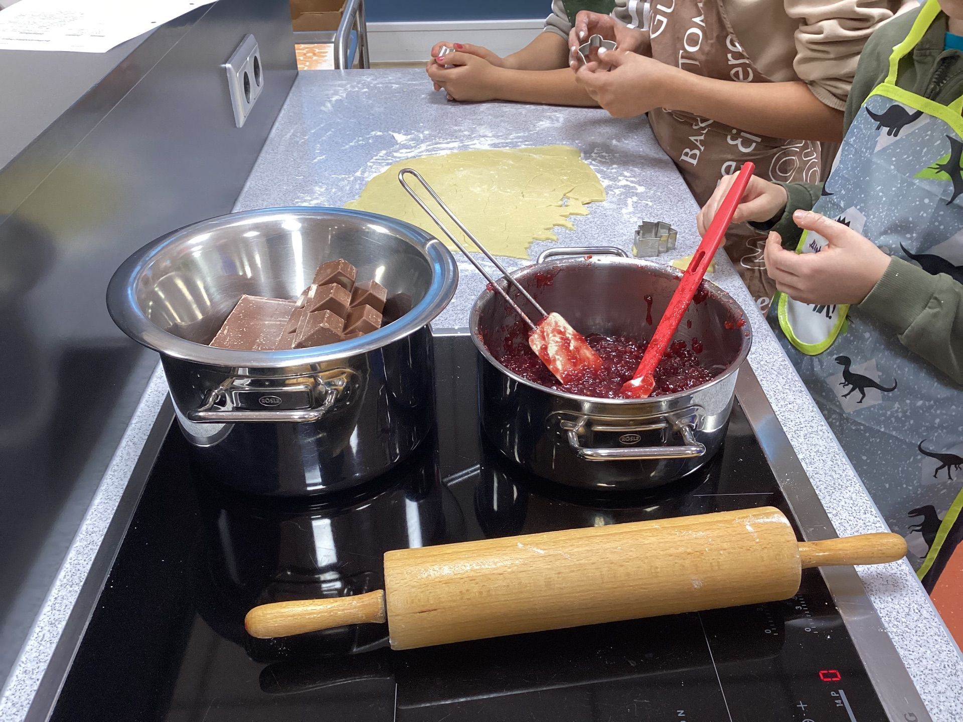 Von 7:45 Uhr bis 12:50 Uhr herrschte in der Küche reges Treiben. Teigrollen, Ausstechformen und Backbleche waren ununterbrochen im Einsatz. Die Schülerinnen und Schüler arbeiteten konzentriert, halfen einander und hatten trotz aller Mühe sichtlich Freude am Backen.