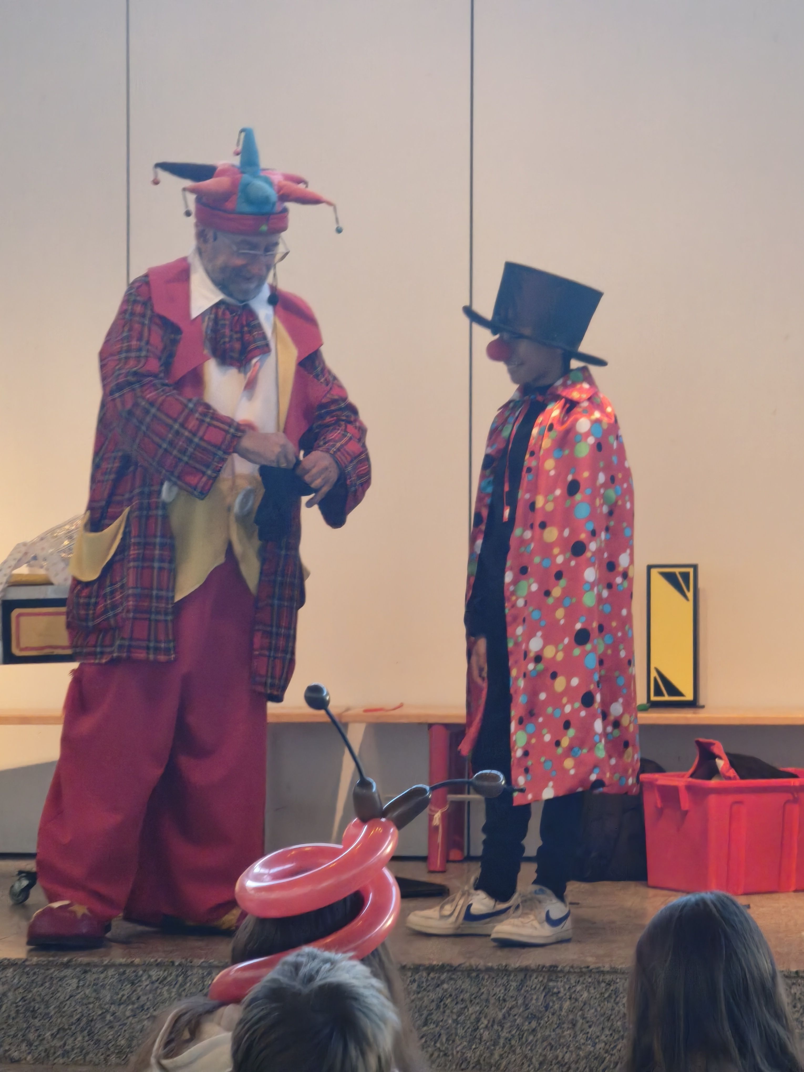 Ein scheinbar niemals endendes Gefäß, aus dem Sirbas immer wieder Wasser (angeblich „aus Indien“ ) ausschüttete, brachte die Kinder genauso zum Staunen wie fliegende Spielkarten, die plötzlich in der Tasche eines Lehrers wieder auftauchten. Ringe verschwanden spurlos, Clownsnasen tauchten immer wieder an unerwarteten Stellen auf – und das Publikum war durchgehend fasziniert.