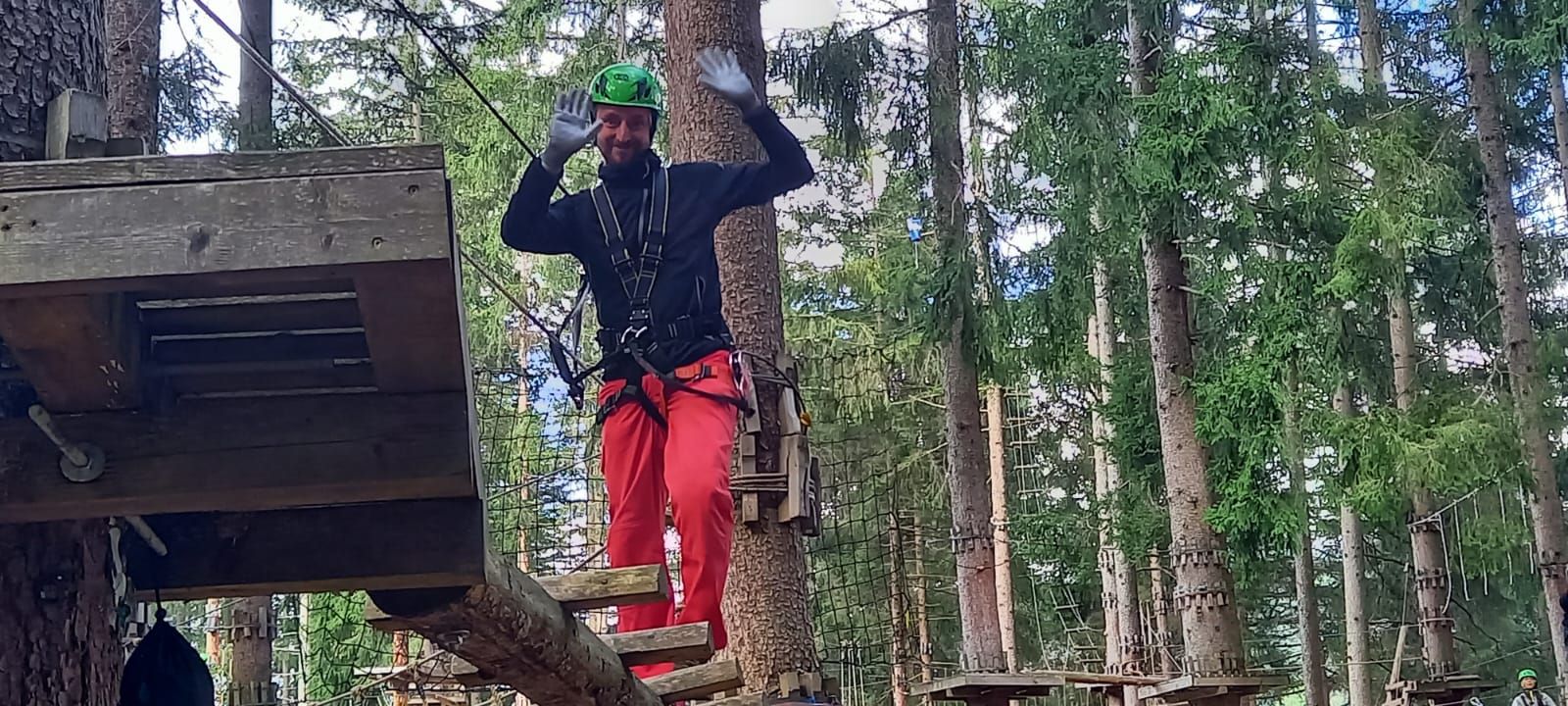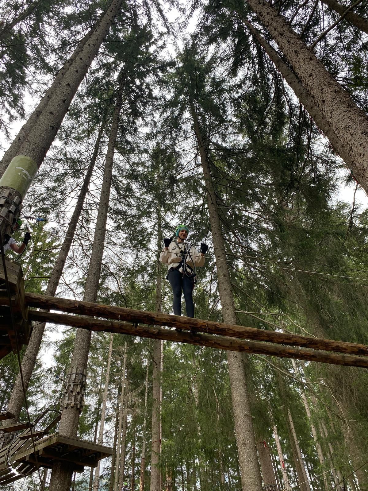 Für uns ging es weiter in den Kletterwald und die Klassen, die bereits klettern waren, durften nun zum Rafting. Im Kletterwald angekommen, wurden wir erst eingekleidet und bekamen eine Einweisung. Danach trieb der Hunger viele in die benachbarte Pizzeria. Es wurden viele Kletterrouten erkundet, wobei der ein oder andere jedoch Hilfe der Mitarbeiter des Kletterparks benötigte. Von Anfängerrouten bis zu 20 Meter hohen Parcours war alles dabei. Nach 3 Stunden Klettern fuhren wir zurück zu unserer Pension. Dort angekommen, packten die meisten schon ihre Koffer für die morgige Heimfahrt. Nach dem Abendessen ließen viele den letzten Abend im Gemeinschaftsraum ausklingen.
