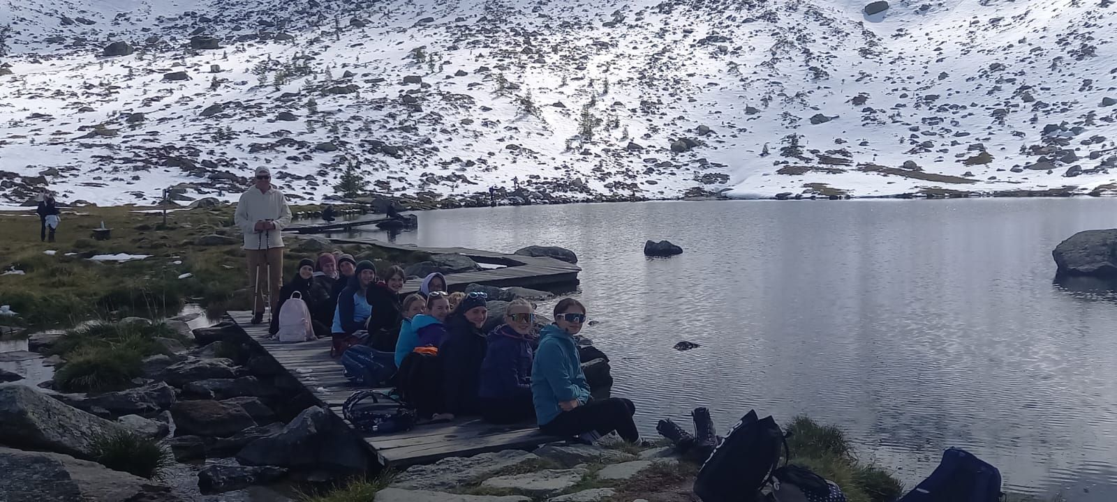Oben angekommen, machten wir uns auf den Weg zum idyllischen Klaussee. Trotz der frischen 9 Grad Wassertemperatur wagten es einige mutige Schüler, in das kalte Wasser zu springen. Die meisten von uns entschieden sich jedoch, lieber auf den Felsen zu sitzen, die warme Sonne zu genießen und den beeindruckenden Ausblick zu bewundern.