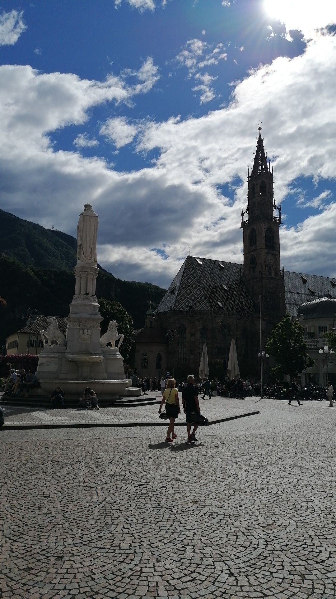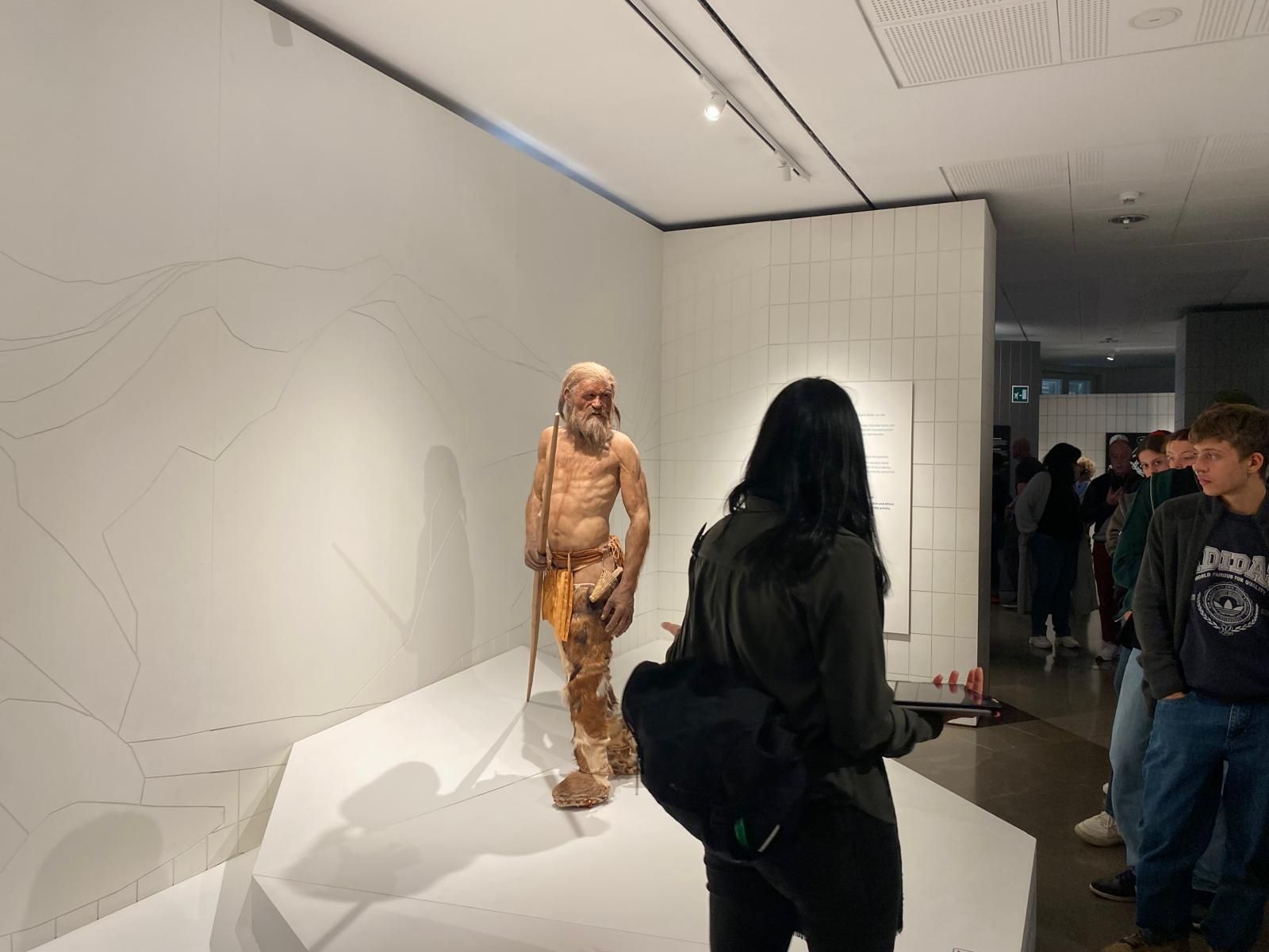Nach ungefähr 1,5 Stunden Fahrt erreichten wir unser Ziel, die Stadt Bozen. Sie liegt in einem Tal inmitten hügeliger Weinberge und gilt als Tor zur Gebirgskette der Dolomiten in den italienischen Alpen. Für das bevorstehende Programm wurden die Klassen in mehrere Gruppen aufgeteilt. Im mittelalterlichen Stadtzentrum befindet sich das Südtiroler Archäologiemuseum mit der "Ötzi" genannten jungsteinzeitlichen Gletschermumie. Dort erfuhren wir bei einer Führung viele interessante Infos über Ötzi (Fundort in den Alpen, Kleidung, Leben in dieser Zeit, Forschungen über seine Todesursache). Doch der Höhepunkt war, seine Überreste noch nach 5.000 Jahren sehen zu können. Aufbewahrt wird er dabei in einer speziell entwickelten Kühlkammer. Die einen ekelten sich bei seinem Anblick, andere wiederum waren begeistert. Leider durften wir von ihm und den Originalfunden keine Bilder machen. Ungefähr eine Stunde verbrachten wir dort. Anschließend hatten wir Freizeit und konnten die Stadt erkunden. Viele vergnügten sich in der Fußgängerzone beim Shoppen, manche gönnten sich eine Pizza oder auch ein Eis.
