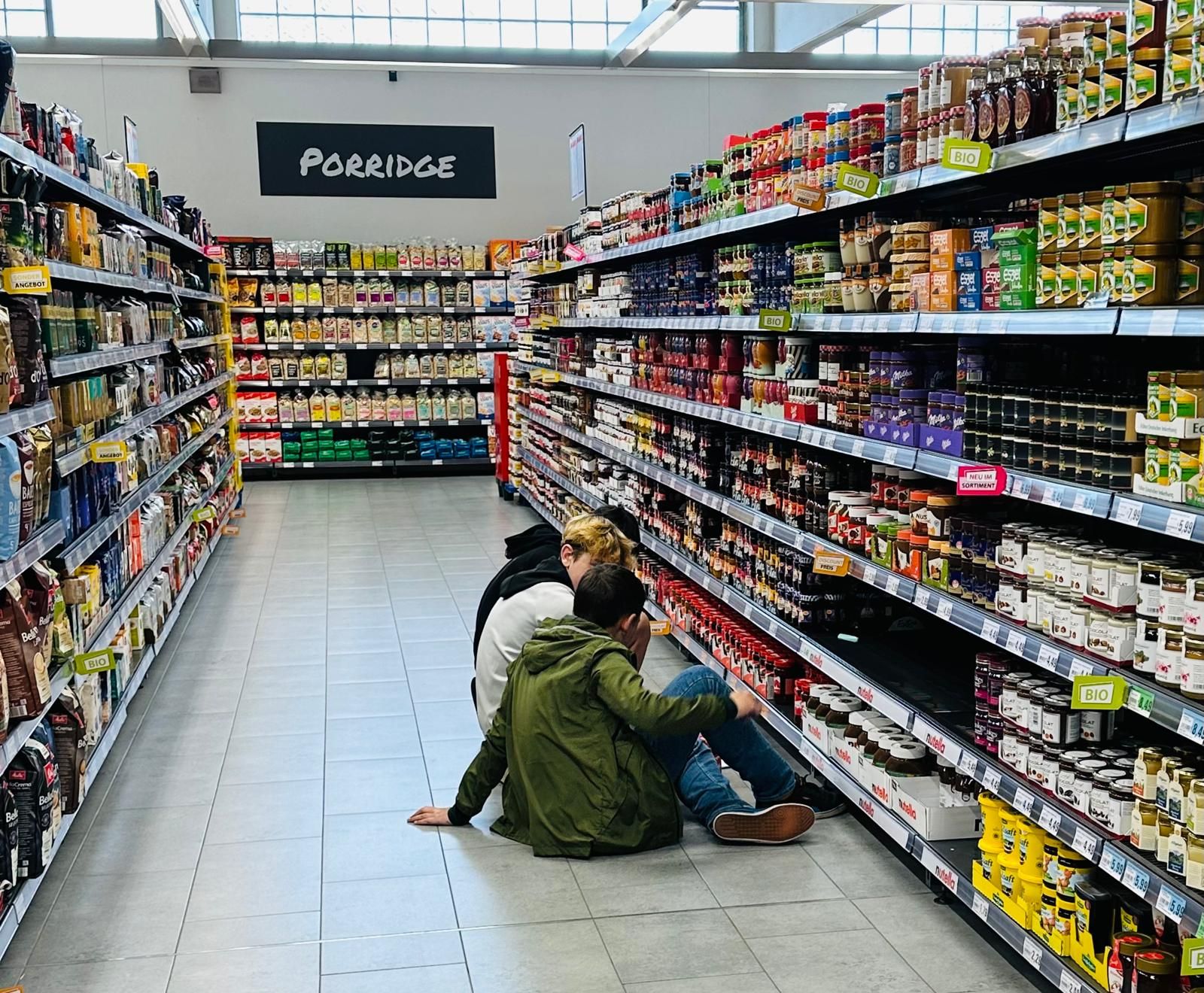 Die Klasse wurde in vier Gruppen aufgeteilt, die sich jeweils mit einer anderen Produktkategorie beschäftigten: Trockenprodukte, Obst, Gemüse und Konserven. Jede Gruppe erhielt ein Arbeitsblatt mit Fragen zu Herkunft, Gewicht, Preis und Inhalt der Produkte.