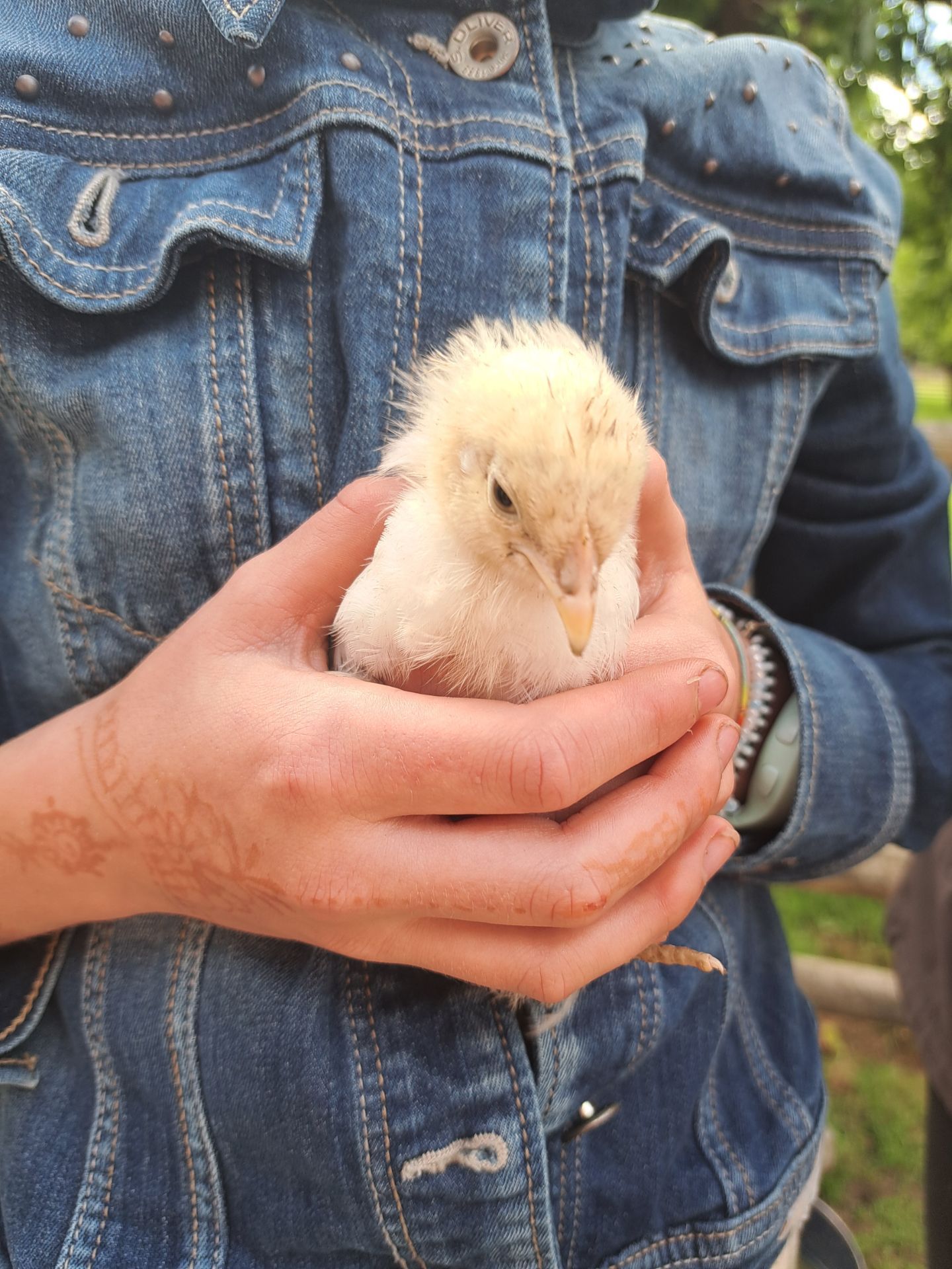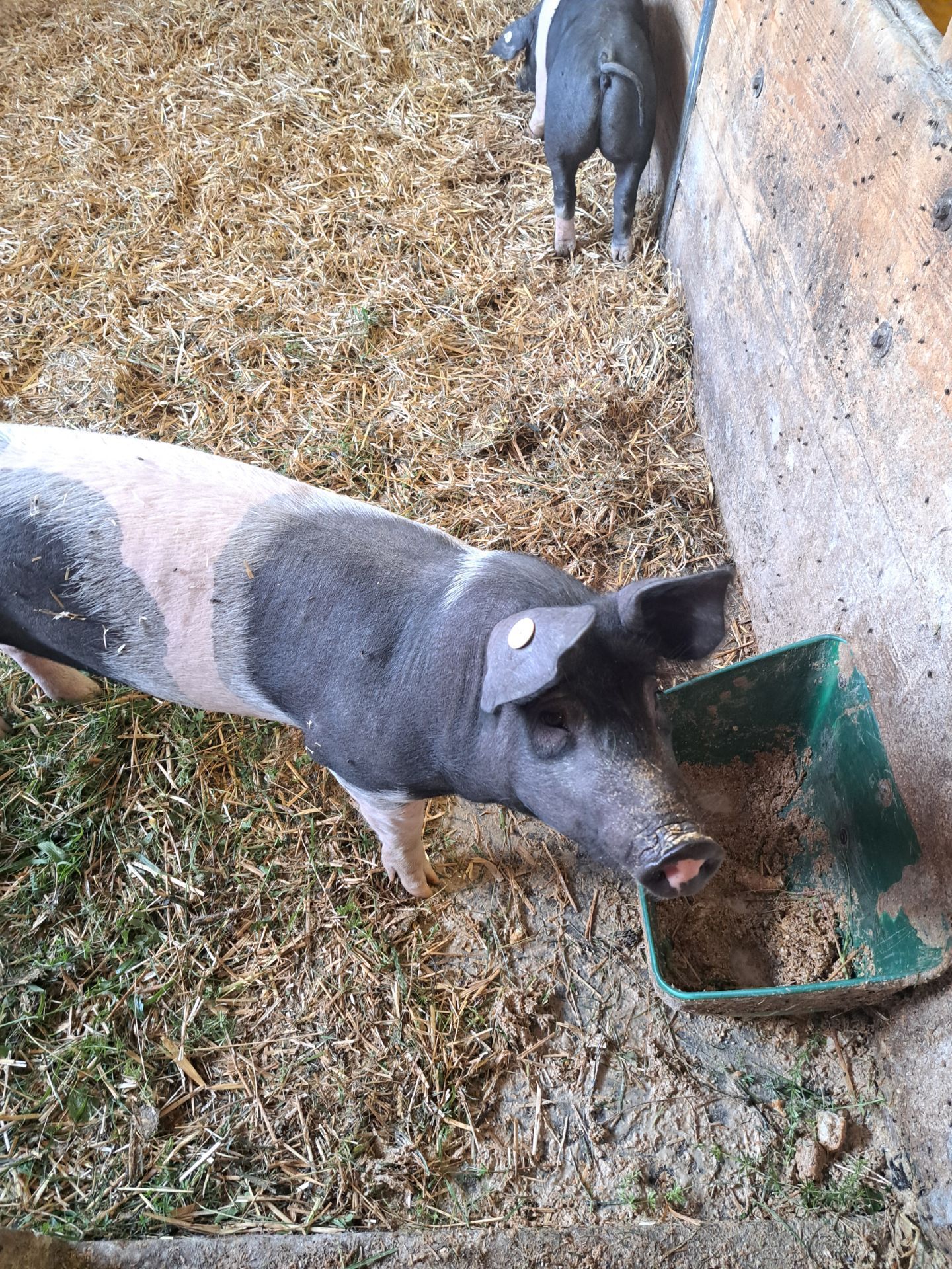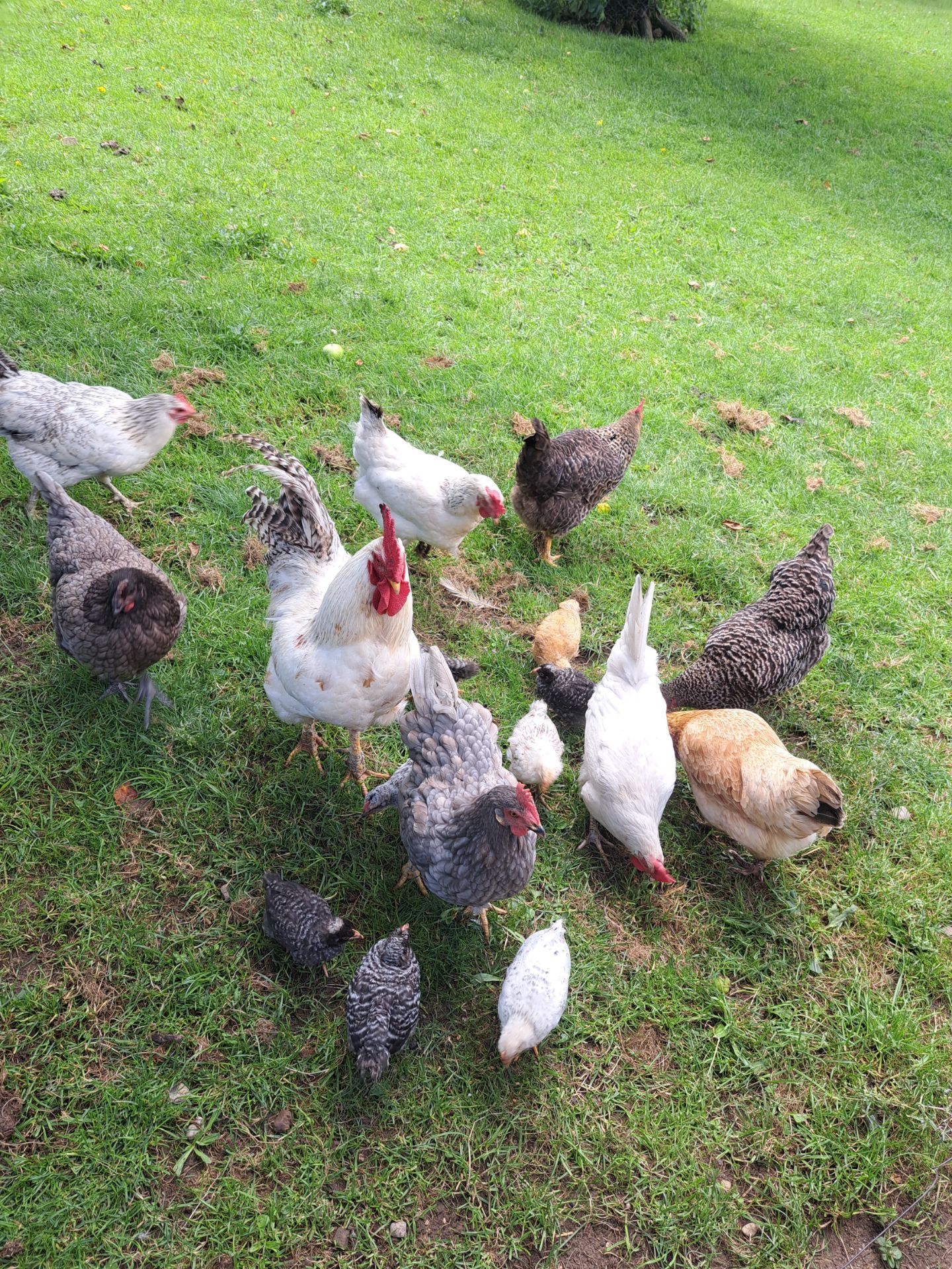 Den Anfang machte Franz mit einer informativen Stallführung. Die Schülerinnen und Schüler lernten interessante Fakten über Kühe, Schweine und Hühner. Besonders staunten viele über die Information, dass ein Küken rund 21 Tage zum Schlüpfen braucht – und dass in der Massentierhaltung männliche Küken oft schon nach vier Wochen geschlachtet werden. Hier laufen die 5 Wochen alten Hühner noch als Küken über die Wiese und habes noch ein langes Leben vor sich.
