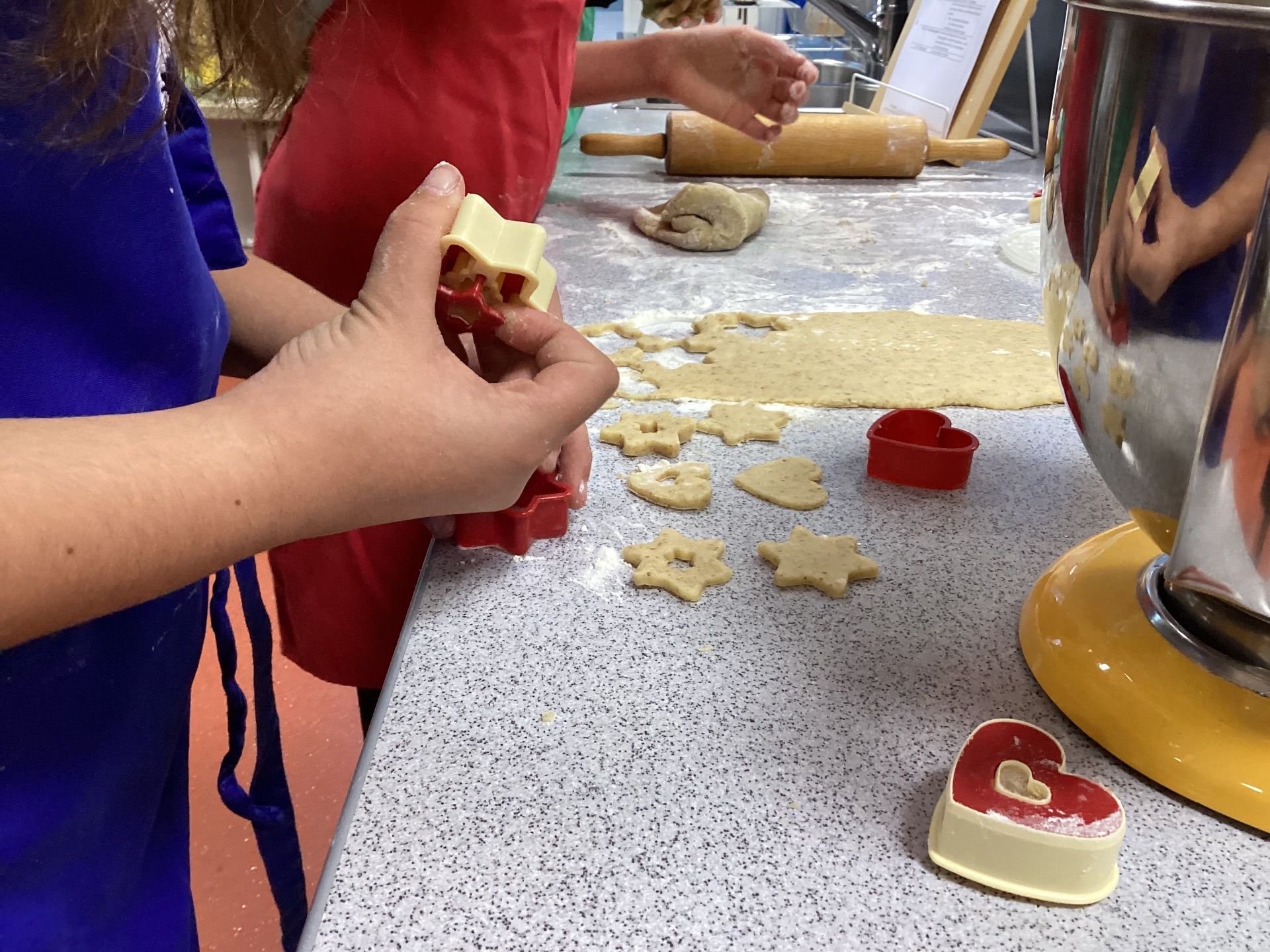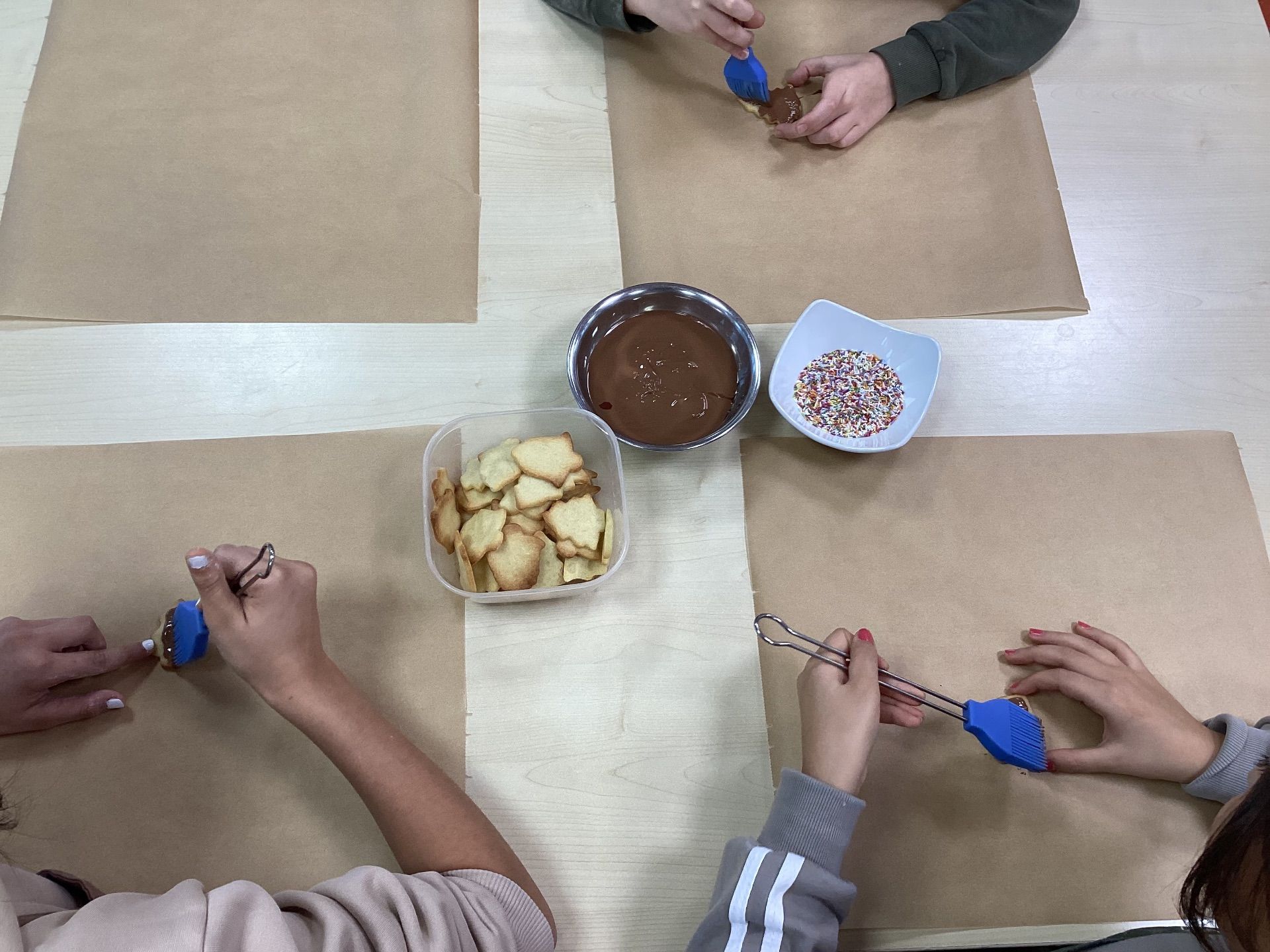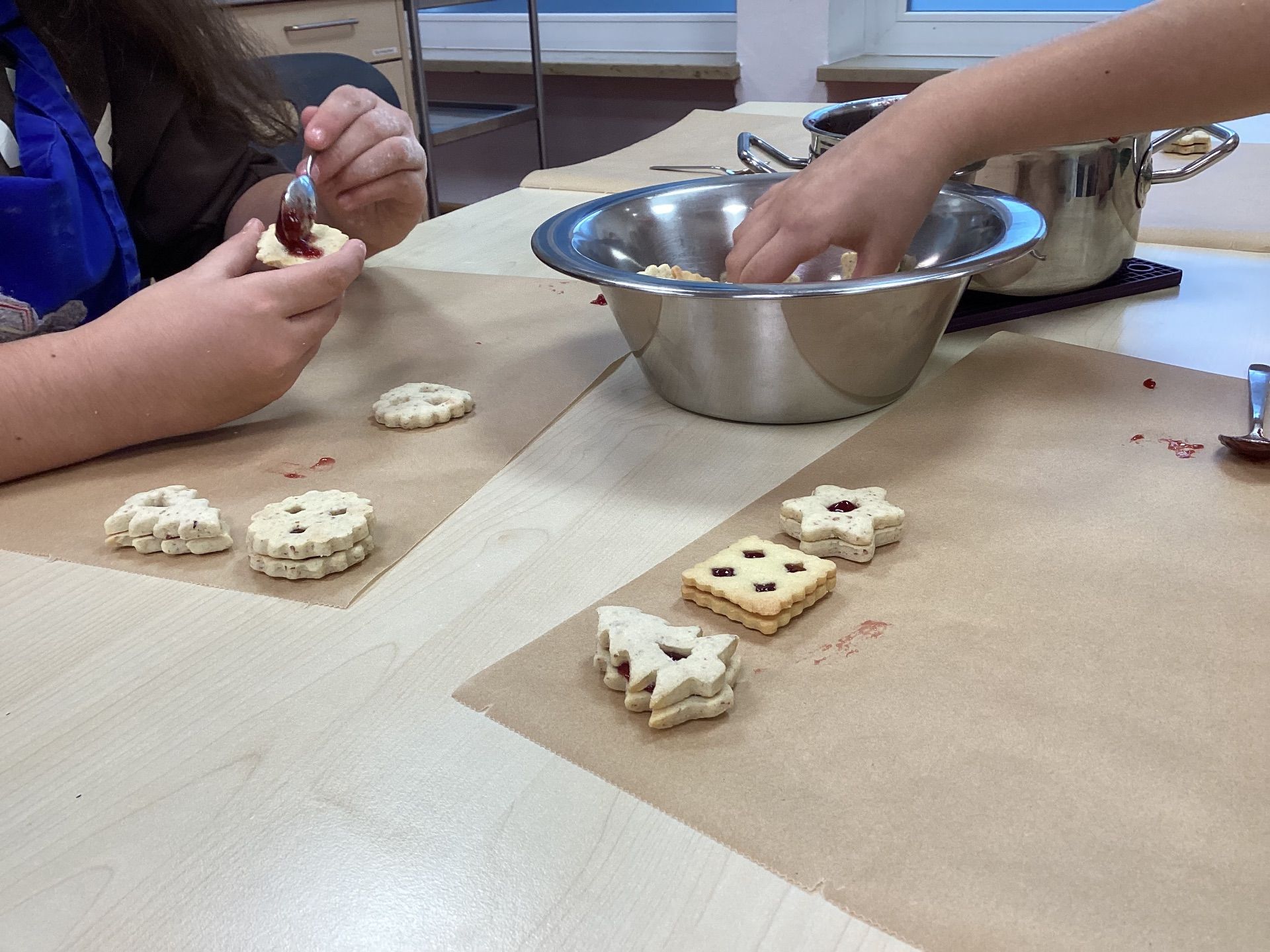 Von 7:45 Uhr bis 12:50 Uhr herrschte in der Küche reges Treiben. Teigrollen, Ausstechformen und Backbleche waren ununterbrochen im Einsatz. Die Schülerinnen und Schüler arbeiteten konzentriert, halfen einander und hatten trotz aller Mühe sichtlich Freude am Backen.