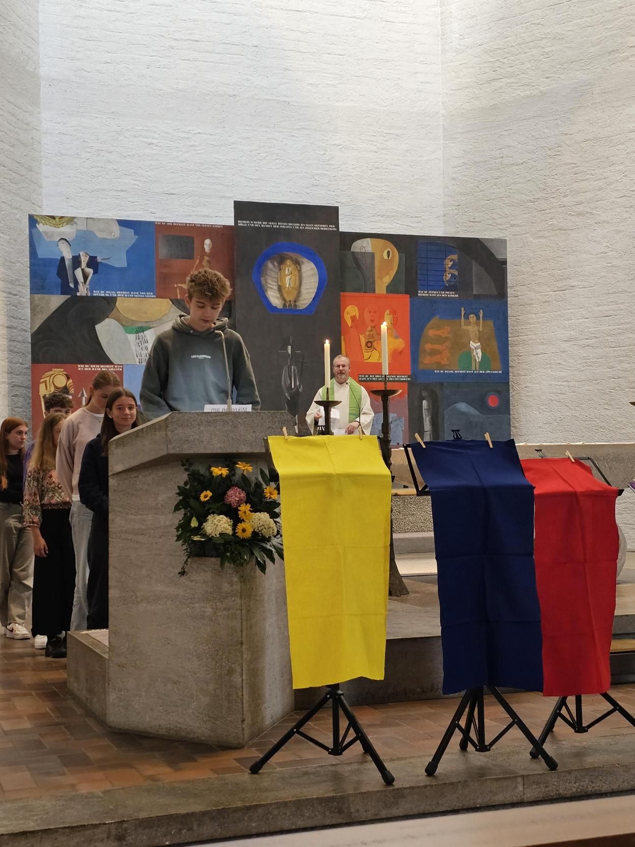Ein Dankeschön sei aber auch an die jeweils 11 Klassen und die Begleitlehrkräfte ausgesprochen, die in der Kirche "Verklärung Christi" ankamen und den Gottesdienst mitfeierten.