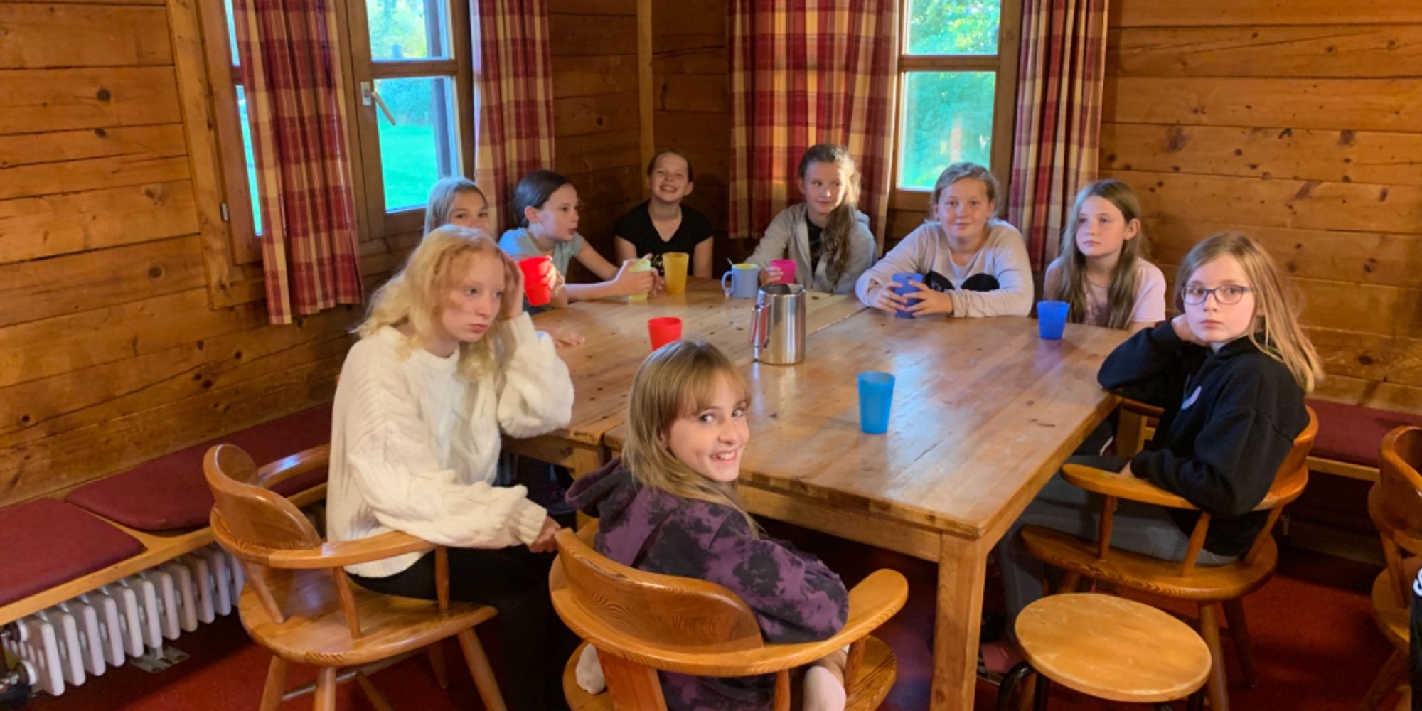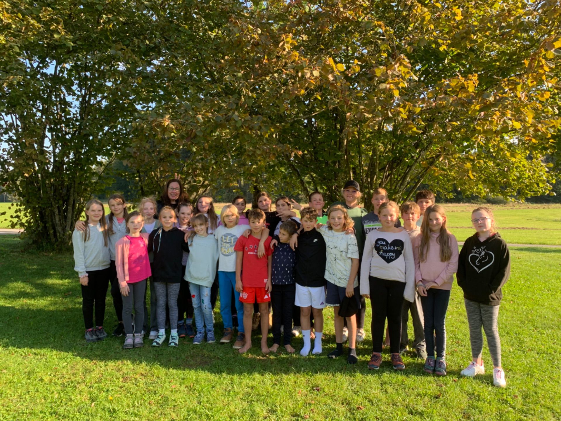 Die 5b ist gemeinsam mit ihren Klassleiterinnen Frau Papaioannou und Frau Russer im Landschulheim.