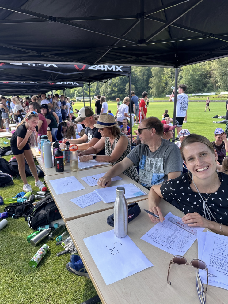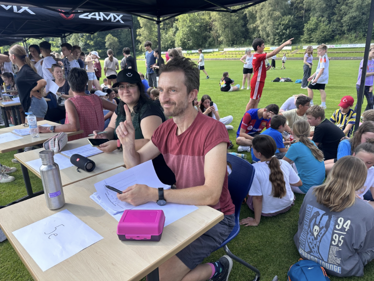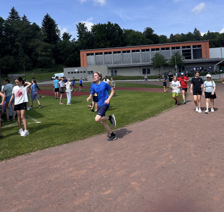 Am Freitag fand der alljährliche Sponsorenlauf um das Sportgelände statt. Die Schüler und Herr Eder hatten 1 1/4 Stunden Zeit, eine 700 m Strecke möglichst oft zu umrunden. Vorher haben sich die Läufer um Sponsoren gekümmert. Es wurden zwischen 1 und 18 Runden pro Schüler zurückgelegt 👍 Besonders erfolgreich waren die 5. Klassen, die zwischen 470,00€ und 613,00€ erlaufen haben.👍👍