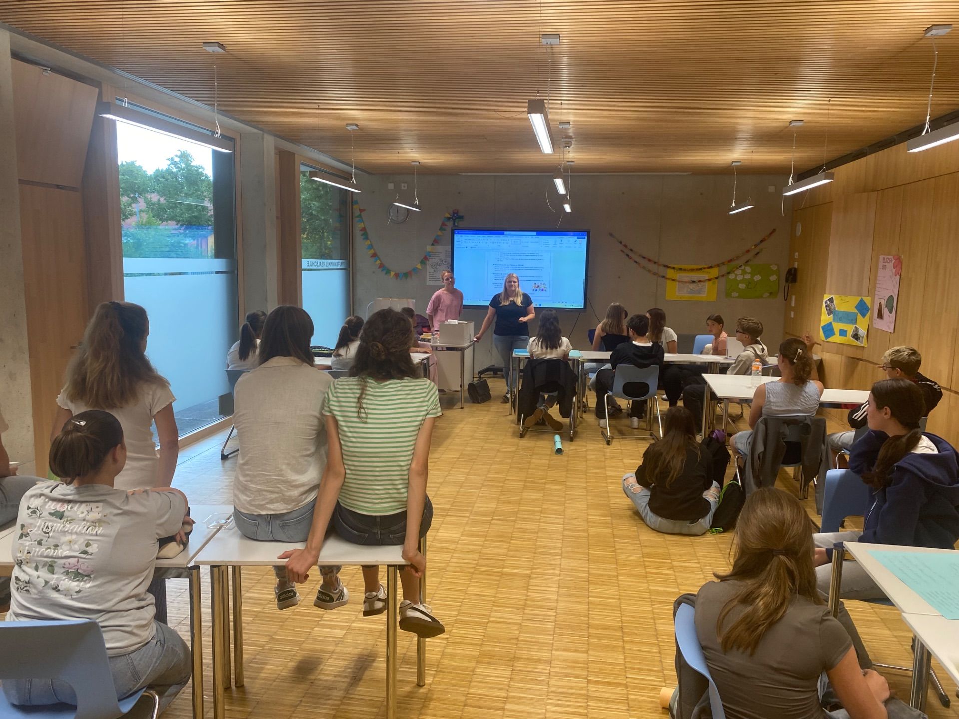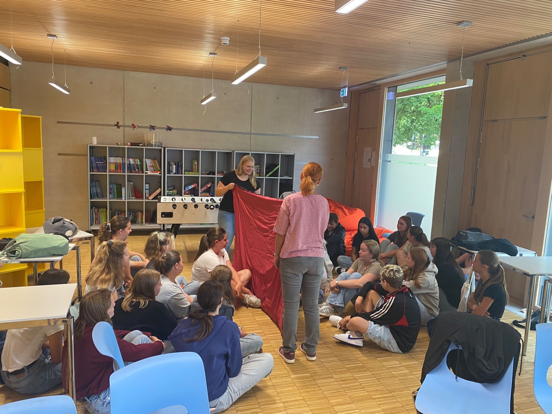 Nach ein paar Kennenlernspielen wurde besprochen, welche Veränderungen und Herausforderungen auf die neuen FünftklässlerInnen zukommen, um sich möglichst gut in sie einfühlen zu können.