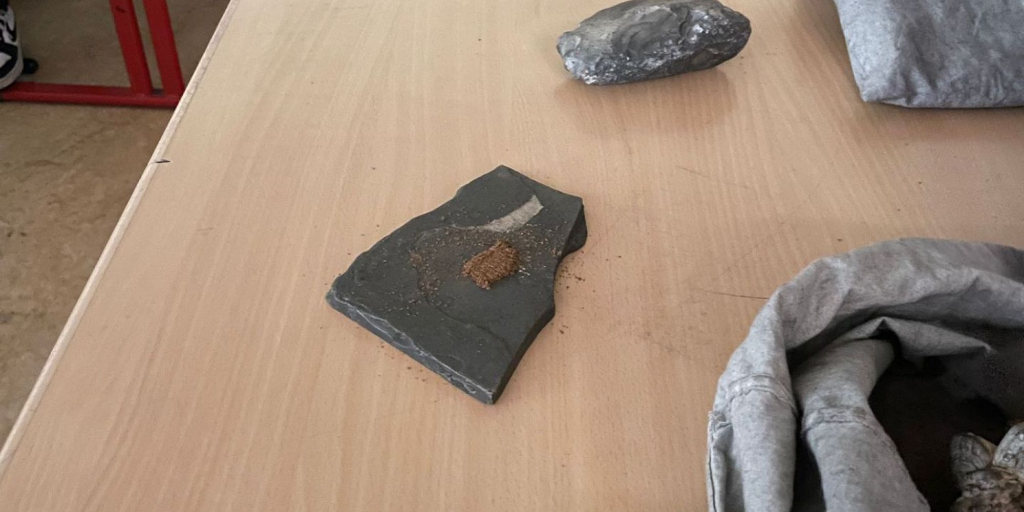 Mit großer Begeisterung nahm Herr Bischler die Schülerinnen und Schüler mit auf eine Reise in die Steinzeit und stellte zugleich die spannende Arbeit eines Archäologen vor. Zum Schluss entfachte er sogar Glut – nur mit Zunder und einem Feuerstein.