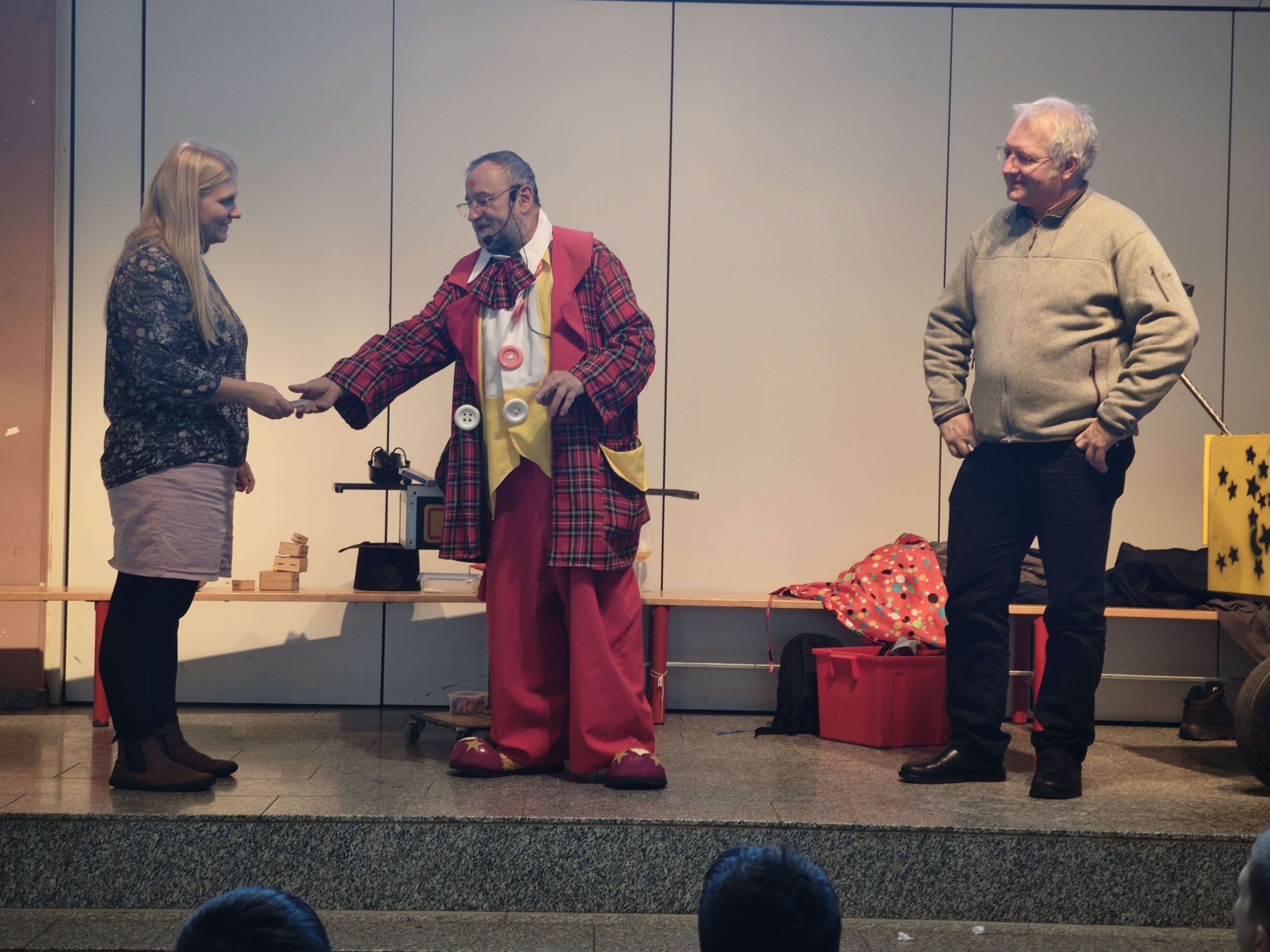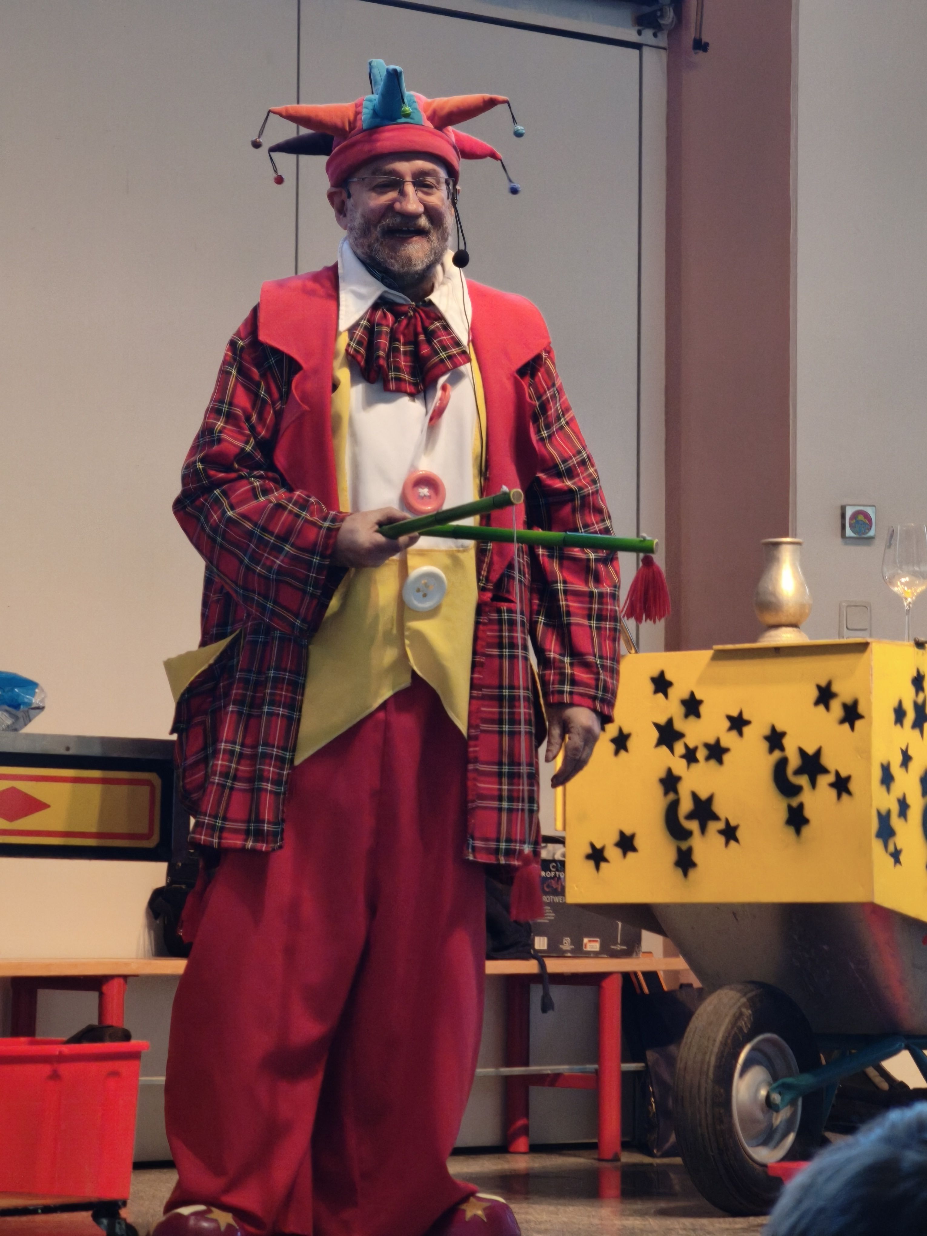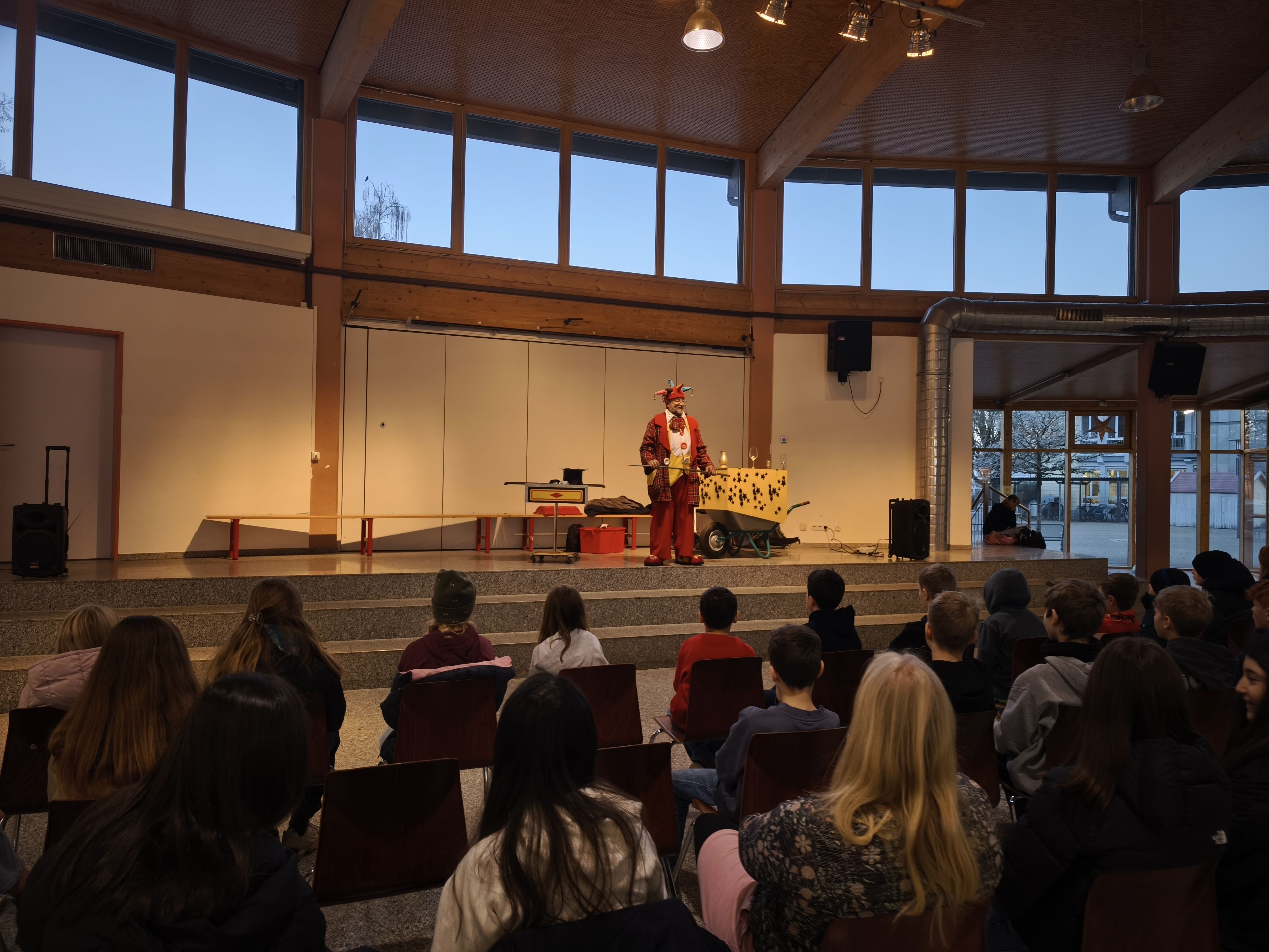 Ein scheinbar niemals endendes Gefäß, aus dem Sirbas immer wieder Wasser (angeblich „aus Indien“ ) ausschüttete, brachte die Kinder genauso zum Staunen wie fliegende Spielkarten, die plötzlich in der Tasche eines Lehrers wieder auftauchten. Ringe verschwanden spurlos, Clownsnasen tauchten immer wieder an unerwarteten Stellen auf – und das Publikum war durchgehend fasziniert.